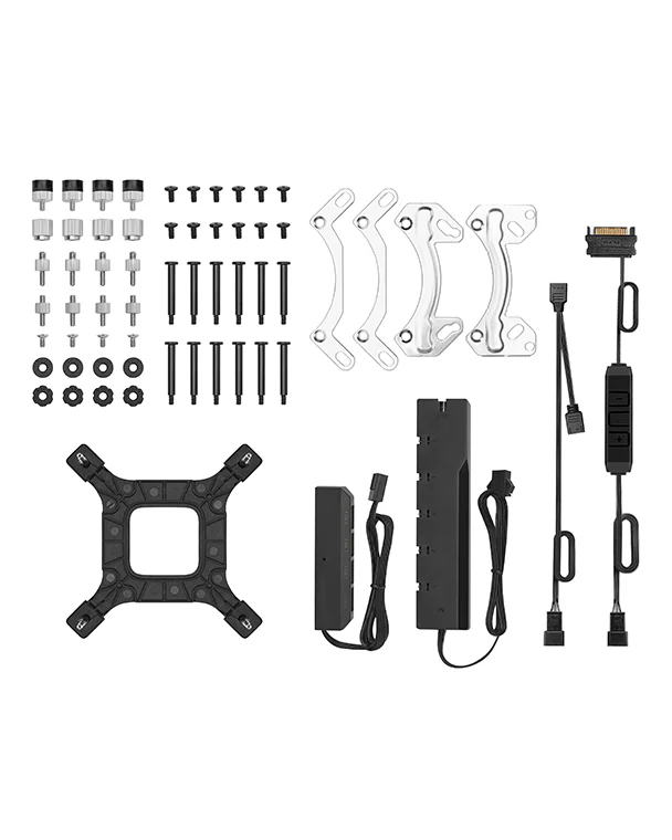 نورپردازی ARGB روی سه فن و بلوک واتربلوک فعال است و میتواند از طریق نرمافزارهای مادربرد (ASUS Aura Sync، MSI Mystic Light، Gigabyte RGB Fusion و …) هماهنگ و سفارشی شود — این یعنی هم عملکرد، هم زیبایی داخل کیس.